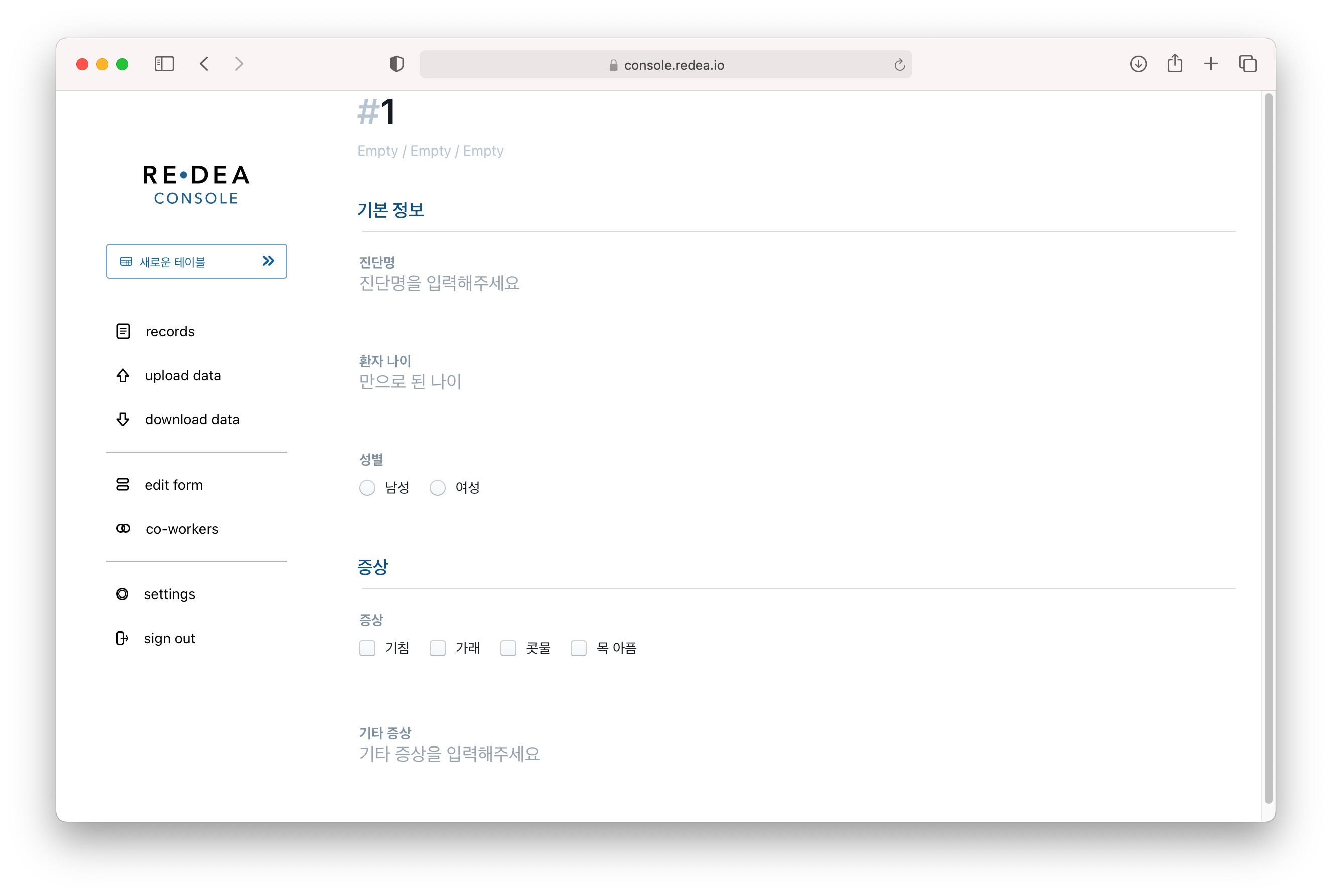 위의 입력폼은 결과적으로 아래와 같이 보입니다 (records 메뉴 -> new record 버튼으로 생성하여 확인)