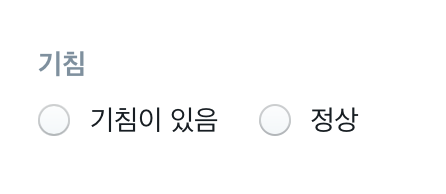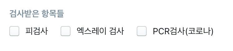 이번에는 기침, 가래, 콧물, 목아픔 의 증상이 있는지 여부를 체크할 수 있는 체크박스, multiple selection필드를 만들어 보겠습니다. 이 증상을 모두 갖고 있을 수 도 있고 모두 안 갖고 있을 수도 있으므로 다중 체크가 가능하겠습니다.