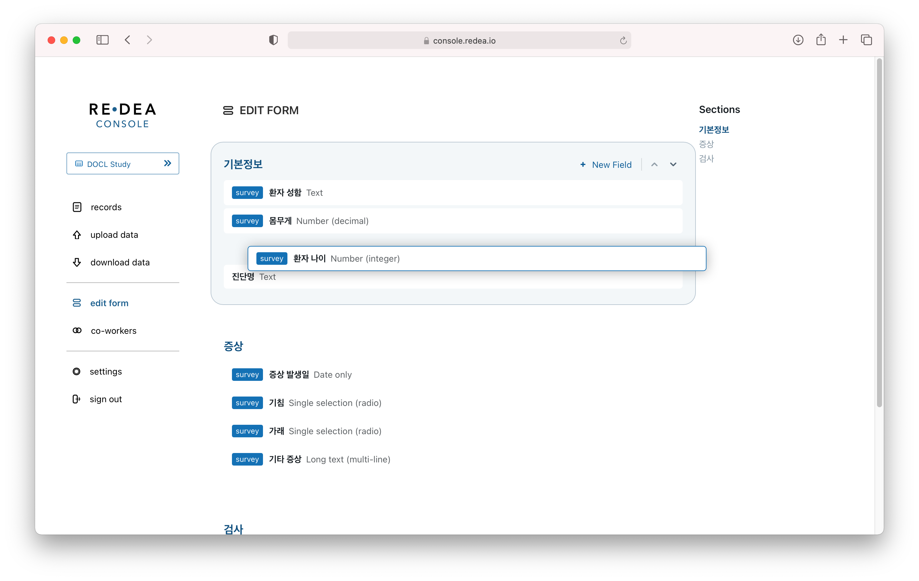 리디아 콘솔 (eCRF 서비스) 사용하기 - 2. 입력 폼 수정하기카테고리 없음 2021. 4. 9. 13:26