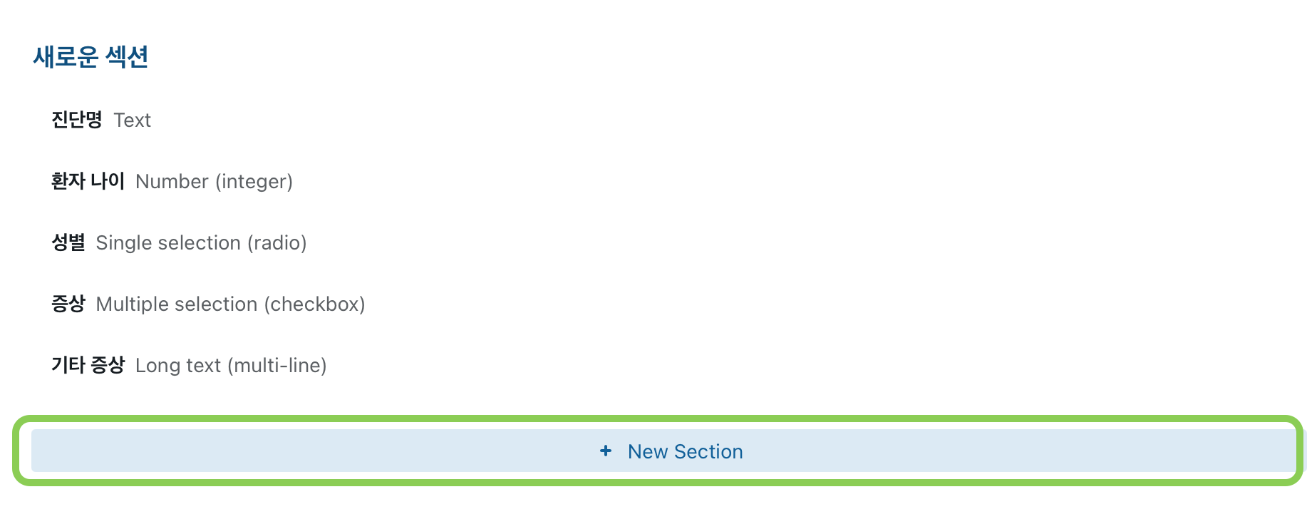 해당 섹션에 새로운 필드를 추가합니다.