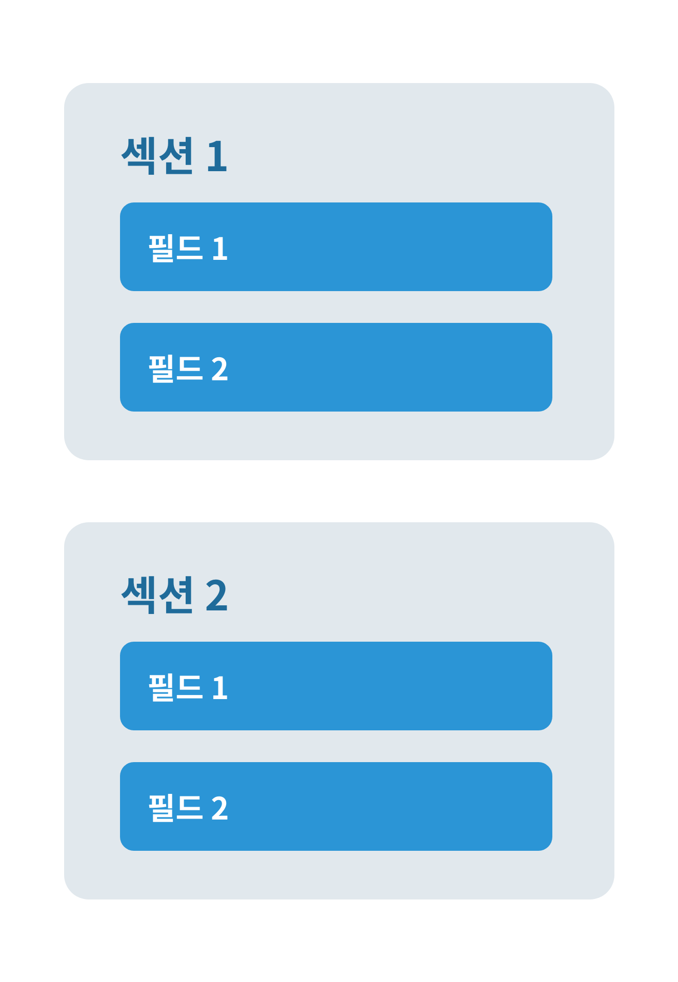 필드는 하나의 입력 내용을 뜻하며, 하나의 섹션에는 이런 필드가 여러개 존재하게 됩니다.