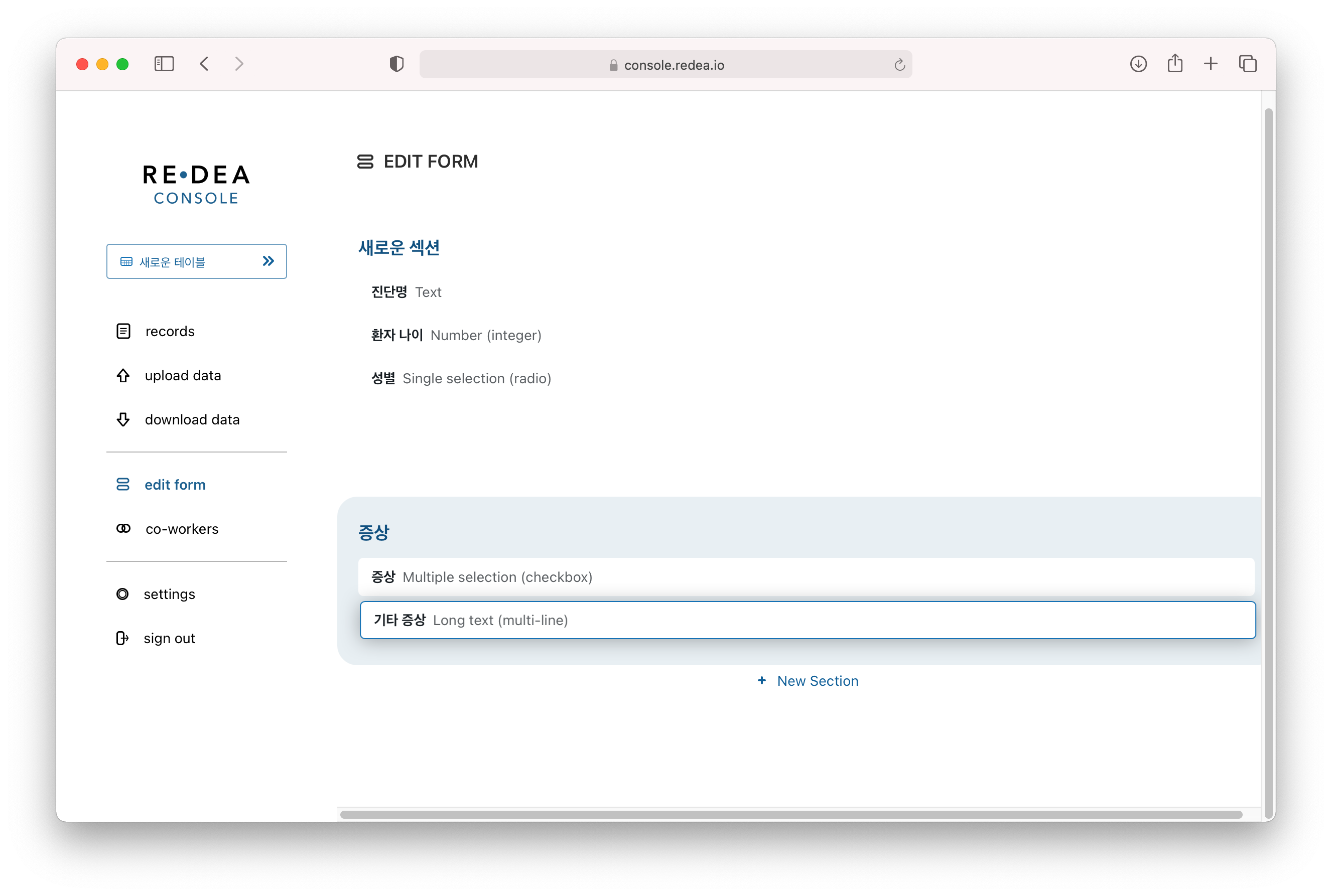 5. 기타 증상 (긴 글)마지막으로 줄바꾸기가 가능한 긴 글을 입력할 수 있는 '기타 증상'필드를 만들겠습니다.