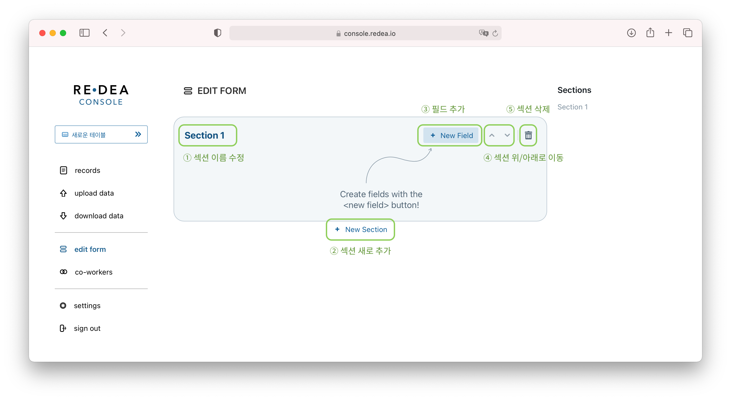 섹션 이름을 클릭하면, 수정이 가능한 형태로 바뀝니다. 여기에 원하는 이름을 넣고 엔터를 누르면 저장됩니다.