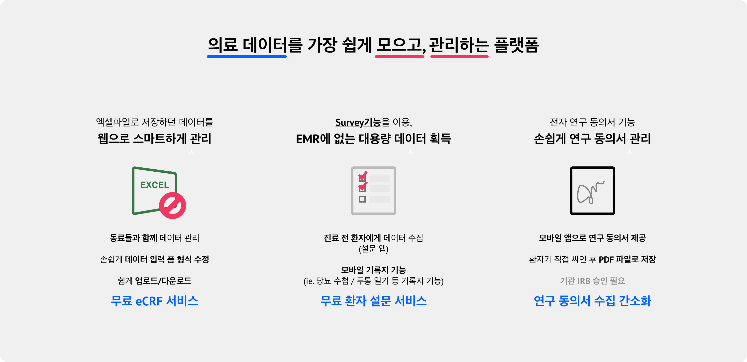 1. 의료 데이터를 엑셀보다 스마트하게 모을 수 있습니다.